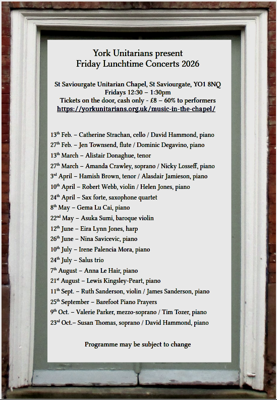 The ground floor of the Chapel is accessible, with assistance, to wheelchair users, and there is an accessible toilet. For more about the chapel or York Unitarians, see ‘York Unitarians’ on Facebook